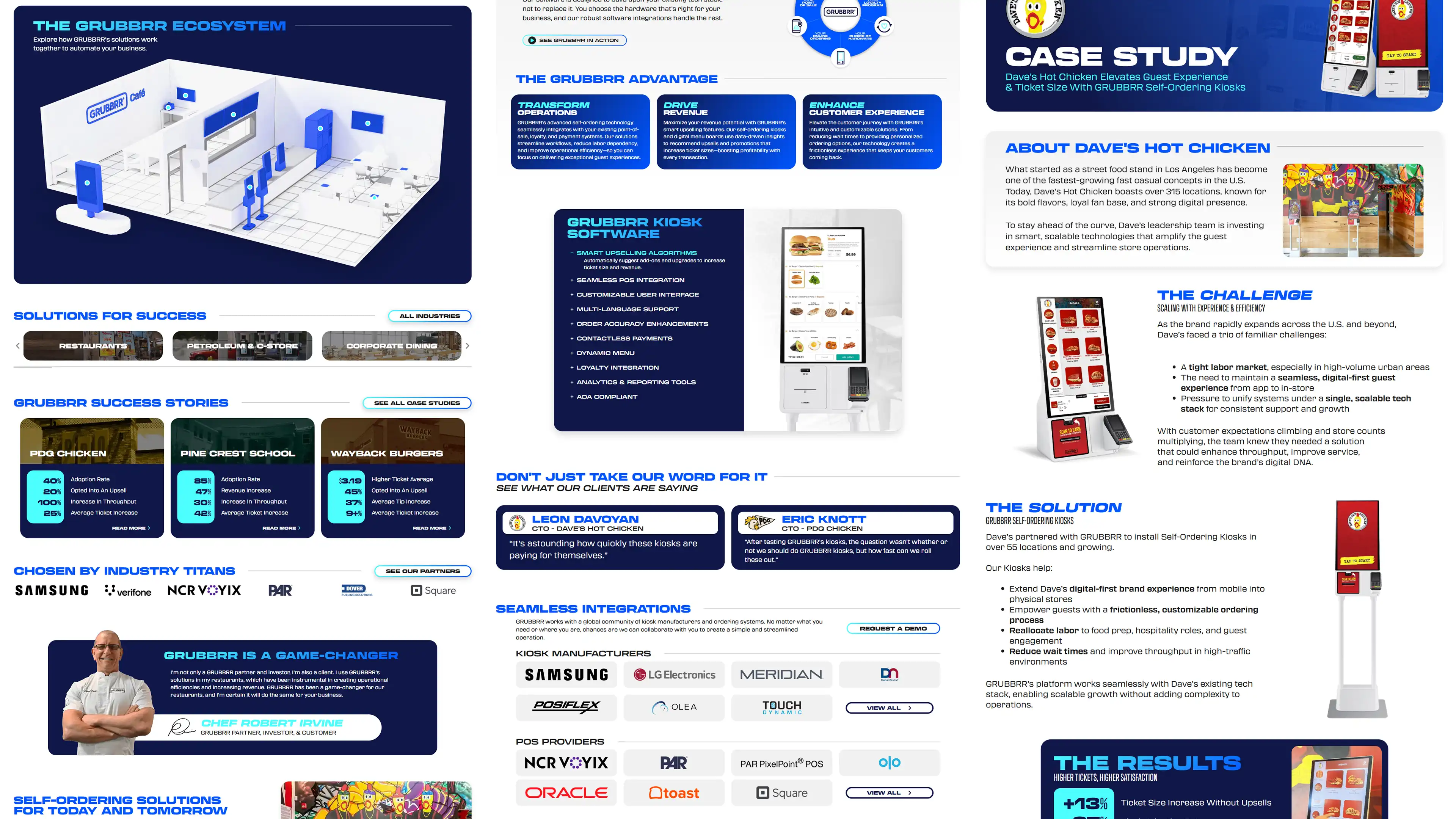 The refreshed brand rolled out across all touchpoints — from the live website to sales collateral and product marketing — marking GRUBBRR’s first identity overhaul since its founding in 2018. The new direction earned strong buy-in from executive leadership and gave the brand a foundation to grow into as the company continues expanding their market share.